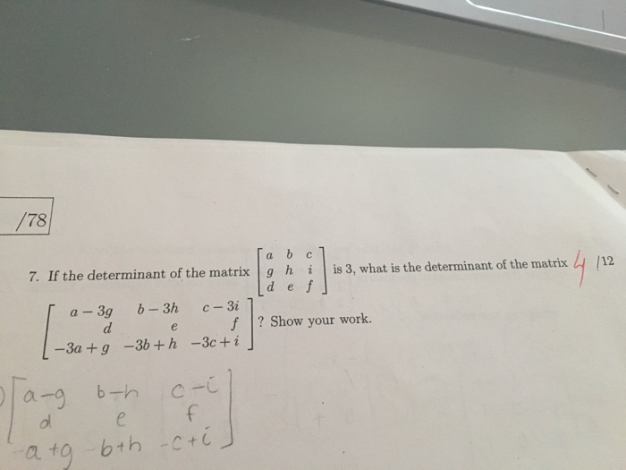 Consider The Following Matrix A A B C D E F G H I Suppose That Det A 6 Find The Determinant Of The Following Matrix B A 3g