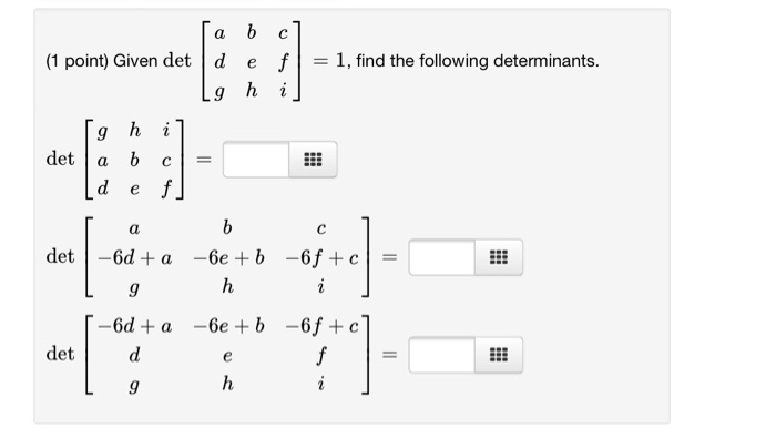 Given det abc def ghi 5 find the following determinants. Encode and decode online. Given det def abc def ghi -1.